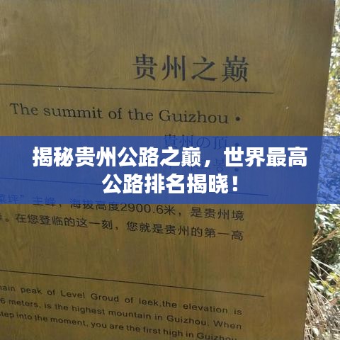 貴州,這片位于中國西南部的神秘土地,以其得天獨(dú)厚的自然資源和壯麗的自然景觀聞名于世,在這片美麗的土地上,公路的建設(shè)同樣令人矚目,我們將聚焦于貴州的公路,探討其中的世界最高公路排名。